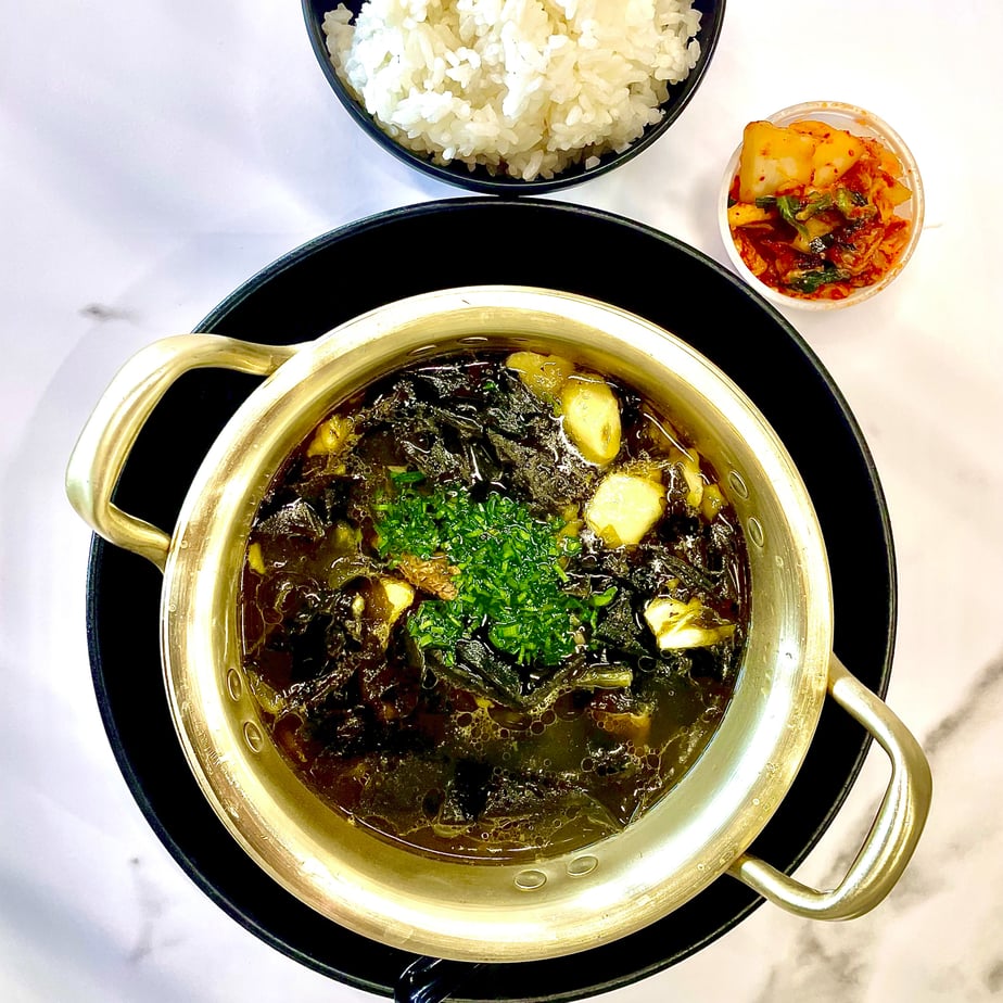 This seaweed soup is an OG Korean’s favorite soup, eaten during birthdays and/or when needed for healing. Made with bone broth then fortified with seafood stock. Served with steamed rice and a side of kimchi.