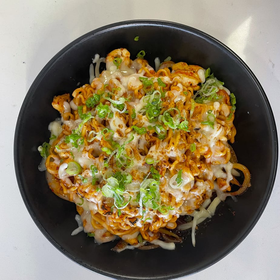 Spicy chicken topped with our spicy ramen and finished with mozzarella cheese.